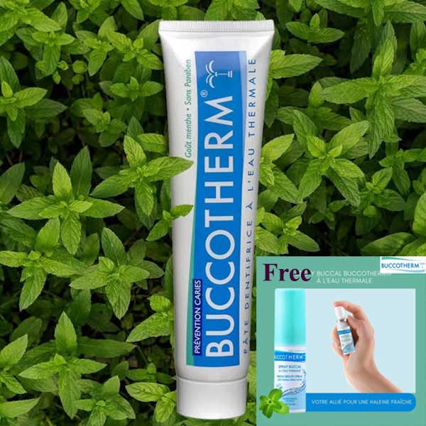 Buccotherm Toothpaste decay prevention 75ML, MINT TASTE & a free Buccotherm Oral Spray, certified Organic 15 ML, MINT FLAVOUR